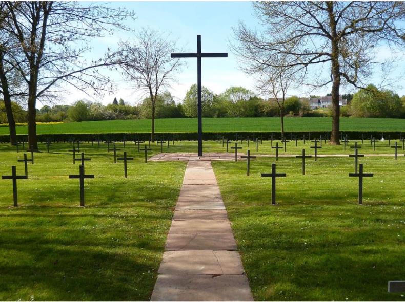 Situé à 750 métrees au sud de la nécropole Française, adossée également au bois de Dompierre, accessible depuis la coopérative agricole se trouvant à l'entrée du village de Ferrières, cette nécropole contient 2227 corps : 1649 dans des tombes individuelles : croix en métal et 587 dans un ossuaire (dont seuls 13 ont pu être identifiés)Ce cimetière a été identifié le 30 juin 1916 par les français, puis agrandi en 1919, à proximité de l'endroit où passait une ligne de chemin de fer par laquelle transitaient, du front à l'arrière, les soldats blessés au cours des combats. Ceux qui ne survivaient pas à leurs blessures, Français comme Allemands étaient inhumés ici. Pour la plupart il s'agissait alors d'hommes ayant combattu lors de la bataille de la somme en 1916.Mais aujourdh'ui, la majorité des hommes inhumés ici a été tué au cours des combats de 1918.En 1921, les corps des soldats français, inhumés dans ce cimetière, ont été exhumé pour être regroupés dans la nécropole nationale, toute proche, qui a été édifiée à cette occasion. D'autres corps de soldats allemands ont alors été regroupés ici, provenant de Courcelles Epayelles, Rollot, Méry, Domfront, Vendeuil Caply, Tricot, Brunvillers, Maignelay, Catenoy, Beauvais, Saint Rémy, Grandvillers, Cempuis, Litz, Bonvillers et Tronquoy.