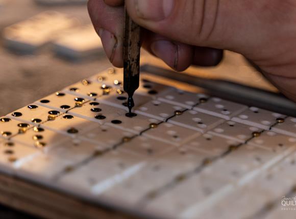 Réalisez les étapes essentielles de la fabrication d’un domino traditionnel en os. Du perçage minutieux au mouchetage, chaque geste demande précision et régularité. Un atelier pour mesurer combien la simplicité apparente d’un domino dissimule une maîtrise longue et rigoureuse.