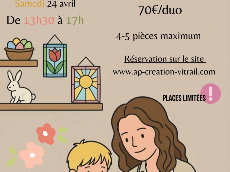 Initiation au vitrail Tiffany sur le thème de Pâques. Un moment de complicité parents/ enfants ( à partir de 8 ans )pour découvrir l'art du verre et repartir avec une création commune
