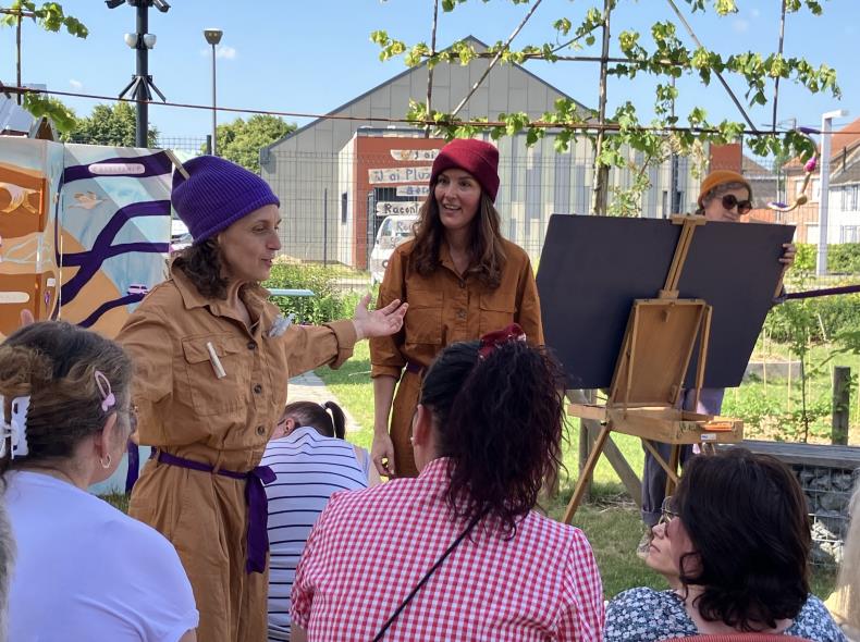 Les comédiennes posent en direct des questions sur les plaisirs de la vie et improvisent des haïkus inspirés des visages des spectateurs.ices. Avec elles, une illustratrice dessine également en direct et à sa façon ce moment partagé.