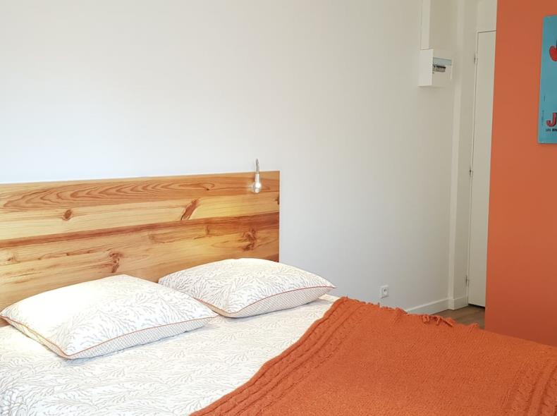 L'appartement Brique comprend un grand lit (160*200) avec une literie de qualité, une TV ambilight, le wifi, une cuisine toute équipée (four micro-onde), plaques de cuisson, frigo, cafetière, bouilloire, grille pain, sèche-cheveux...
