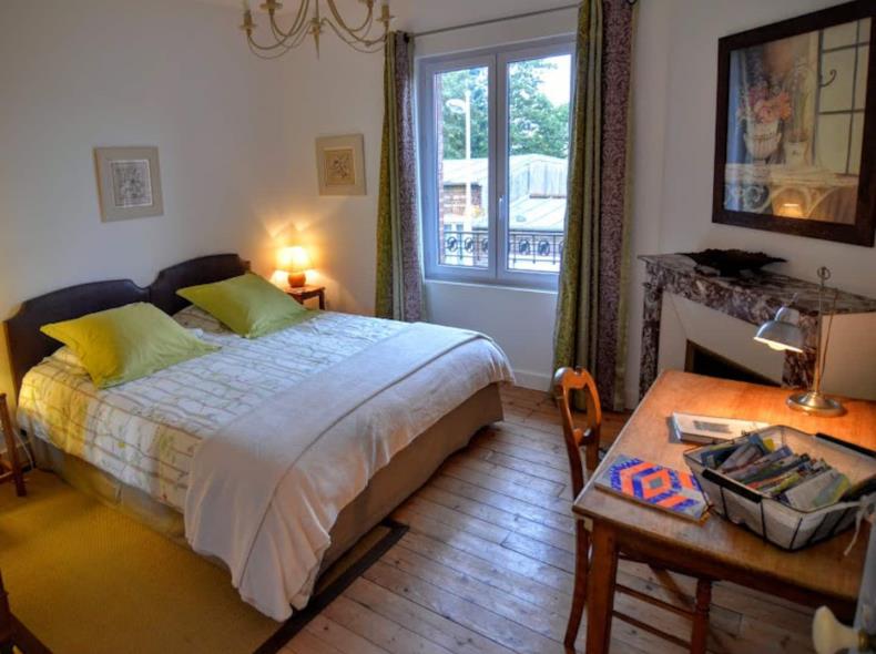 – chambre double ( lit double 180x190 ou 2 lits simples 90*190), coin bureau et armoire ancienne.