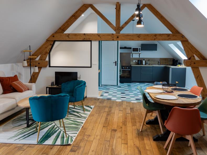 Charmant appartement entièrement rénové situé au centre du village et à 10 minutes de l'autoroute A1.