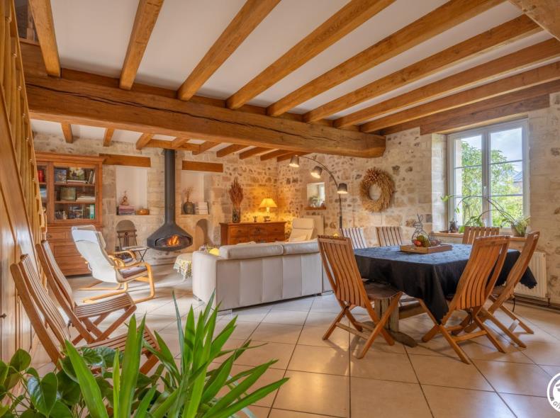 Idéal pour un séjour en famille ou entre amis, ce gite offre un cadre authentique au cœur de la nature. Il dispose d'un jardin de 400 m² arboré avec salon de jardin et un barbecue.jouxtant un potager, des plantes aromatiques et des petits fruits, Au rez-de-chaussée : vaste séjour ouvert de 90 m² avec cheminée, salon TV , salle à manger, grande cuisine parfaitement équipée. Salle d’eau, lave-linge et Wc. À l’étage, un espace détente relie trois grandes chambres (1 lit 2 personnes, 1 lit 1 personne / 1 lit 1 personne,/ 4 lits 1 personne), un espace bébé (lit, baignoire...), une grande salle de bains et des wc séparés. Parking sur place, terrain de pétanque , volley-ball. Thématique : télétravail, randonnée pédestre, balades à vélo et Gite au jardin. Il s'inscrit également dans une démarche axée sur la biodiversité. Location 2 nuits minimum.