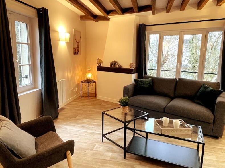 L'Escale est un bel appartement de charme de 50m², très lumineux, situé à 5 minutes à pied du centre-ville historique de Senlis et de ses ruelles pavées pleines de charme. Il est situé au 2ème et dernier étage, dans une résidence très calme, entourée de verdure ! Il se dispose d'un grand séjour avec canapé-lit (2 personnes), TV connectée, une cuisine toute équipée (lave-vaisselle, machine Nespresso, micro-onde, four, frigo-congélateur, grille-pain, bouilloire,...), une salle d' eau avec lave-linge et WC . 1 chambre avec lit King size (ou 2 lits simples 90x200 cm, selon votre convenance) Connexion internet Fibre Vous pourrez pique-niquer, vous adonner à la pétanque, jouer au ballon pour les plus jeunes ou juste profiter du parc qui entoure la résidence. Parking gratuit à côté du parc. Les lits sont faits à votre arrivée et le linge de maison et de toilette est compris, ainsi que les charges. Forfait ménage fin de séjour en supplément.
